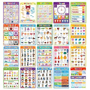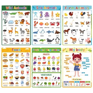 跨境热销英文学习主题认知时间水果颜色动物身体儿童教育海报现货