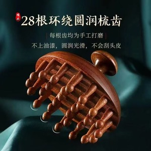 圆盘檀木头部经络梳子头皮圆盘按摩梳木质按摩器刮痧经络疏通木梳