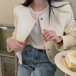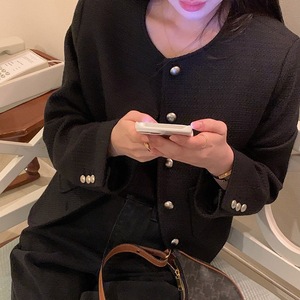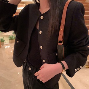 东大门ins秋装新品法式复古优雅气质别致金属银扣小香风短外套女