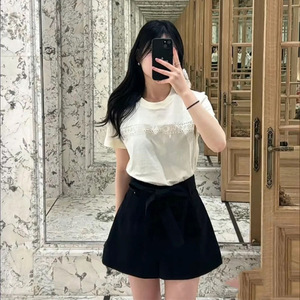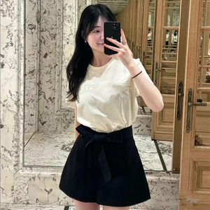 25秋季新款南油高定Mon简约休闲显瘦圆领立体刺绣短袖T恤