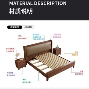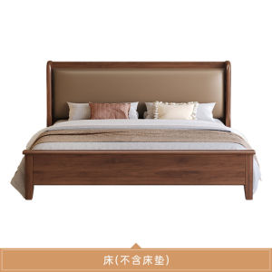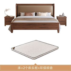檬榆金丝胡桃木实木床主卧大床双人1.8x2米现代简约1.5米软靠婚床
