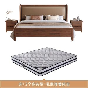 软包实木床+2个床头柜+乳胶弹簧床垫