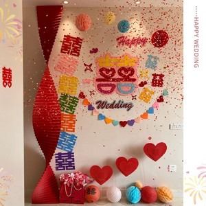 结婚多巴胺粉色喜字婚房布置背景墙装饰氛围感新房客厅男女方婚礼