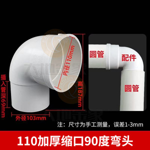 110加厚缩口90度弯头【66个/箱】