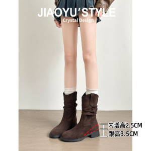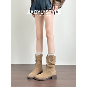 牛皮版~真皮美拉德短靴女新款复古马丁靴子粗跟堆堆靴西部牛仔靴