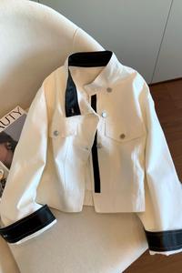 2025秋季新款撞色拼接立领夹克上衣韩版复古百搭宽松休闲短款外套