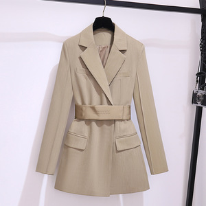法式高级感收腰显瘦西装时尚--女秋季新款气质百搭中长款绑带外套
