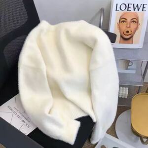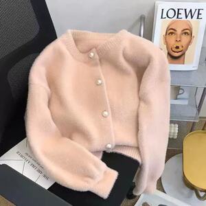 跨境纯色仿貂绒毛衣外套女2025秋冬新款宽松慵懒风针织开衫软糯