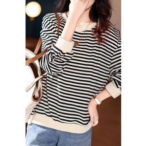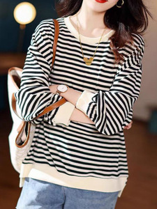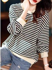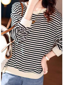 哥家商场同款女装2025秋季高级感显瘦减龄宽松百搭纯棉条纹卫衣