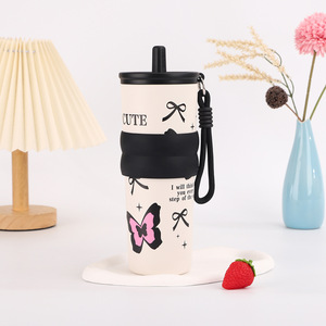 创意印花吸管咖啡杯高颜值304不锈钢保温杯大容量便携车载冰霸杯