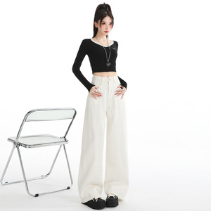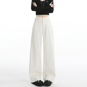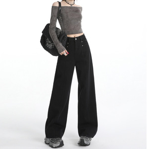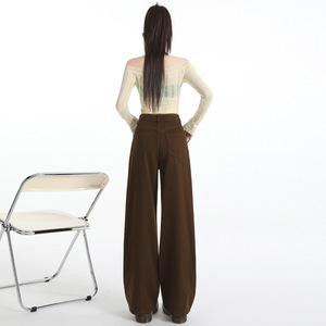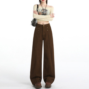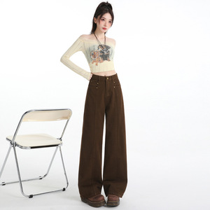 2025春秋咖色直筒牛仔裤女宽松复古高腰显瘦牛仔拖地裤阔腿裤棉