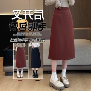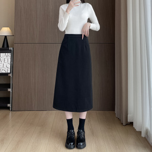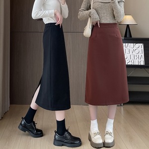黑色a字开叉长款包臀裙女秋季新款西装半身裙高腰垂感显瘦直筒裙