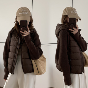轻薄针织拼接棉服女短款连帽韩版2025冬季新款韩版棉衣棉袄外套