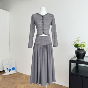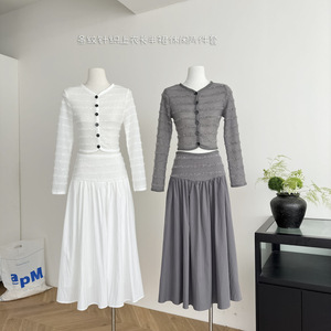 简约条纹针织上衣长袖+休闲长裙半裙休闲两件套2025秋季新款
