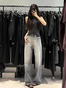 UMAWHITE广州十三行润登2025秋季牛仔裤女通勤渐变阔腿长裤通勤风