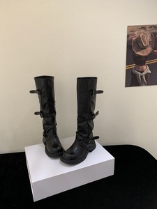 2025秋冬新款美拉德堆堆靴小众设计裤管靴粗跟显瘦百搭套筒长筒靴