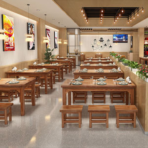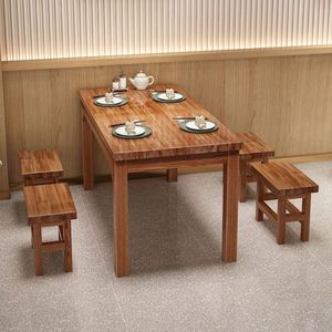 实木餐桌商用餐饮桌椅火锅饭店面馆桌椅快餐食堂吃饭桌子碳化餐桌