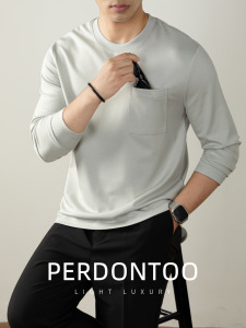 【高奢轻熟风】60S丝光莫代尔口袋T桖男长袖贴身舒适打底衫秋冬款