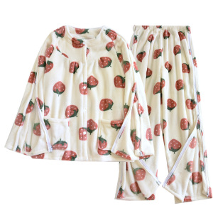 女冬季法兰绒保暖大码护理服针灸理疗术后康复易穿脱卧床透析化疗