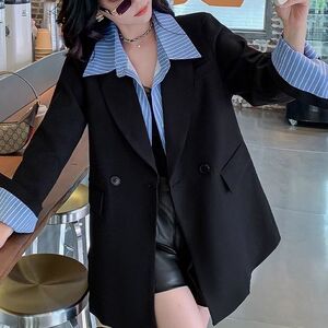 大码休闲西装外套女春秋2025新款穿搭宽松小众假两件西服胖mm