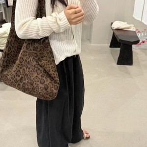 韩系豹纹麂皮托特包时髦千禧风复古百搭大容量单肩包秋冬新款包包