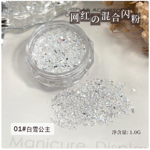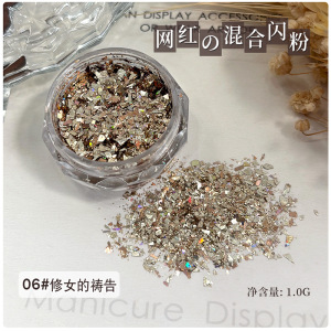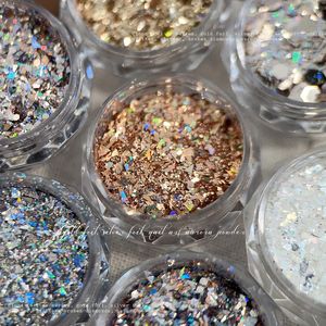 美甲亮片爆闪混合贴片多边形银色浅金白色闪粉碎片diy指甲装饰品