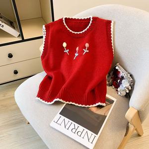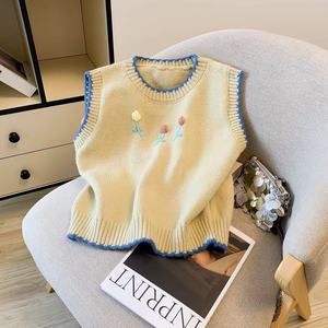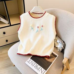 广州十三行高货爆款~花朵绣花针织马甲背心女秋减龄软糯叠穿马夹