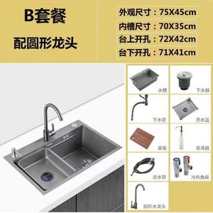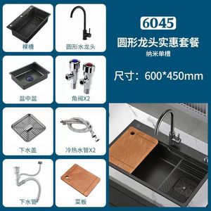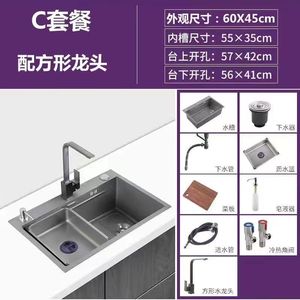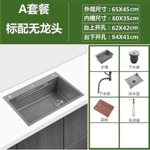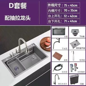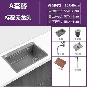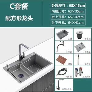 网红枪灰色厨房水槽家用纳米 304不锈钢大单槽多功能洗菜池洗碗槽