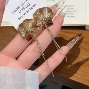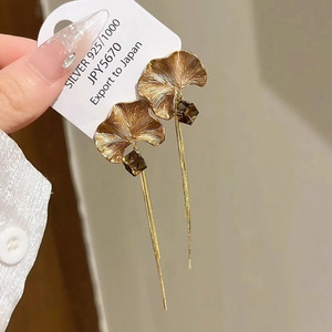轻奢国风银杏叶流苏耳钉设计感港风精致独特旗袍汉服配饰女耳饰品