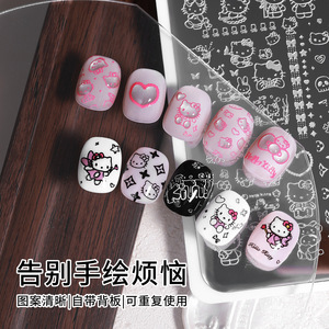 新款美甲印花钢板HelloKitty猫咪模板硅胶印章转印工具美甲店专用