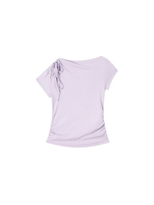 谢不肉 绑带斜肩短袖T恤女夏季韩系修身显瘦小众设计感褶皱上衣