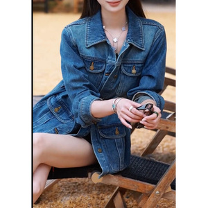 欧货2025秋冬新款经典水洗工艺原始质感收腰牛仔外套港风长袖上衣