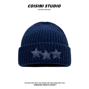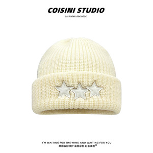 2025新款程潇同款星星灰色毛线帽子女秋冬保暖韩版百搭双层针织帽