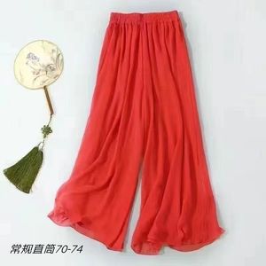 新中式雪纺裤女双层夏季宽松显瘦休闲阔腿裙裤马面裙内衬垂坠感