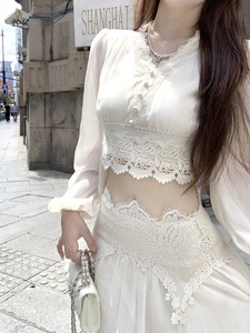 Q女家托斯卡纳巡礼/优雅精致蕾丝上衣半身长裙套装早秋氛围感穿搭