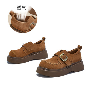 发泡底真皮英伦风单鞋2025秋季新款厚底女鞋休闲时装通勤乐福鞋女