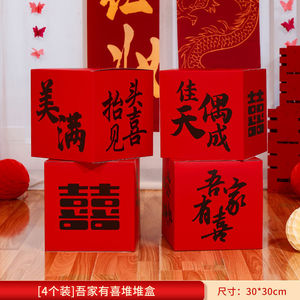 【婚房颜值好物】新潮风喜庆堆堆盒-囍字立体推推盒-吾家有喜【4个装】