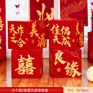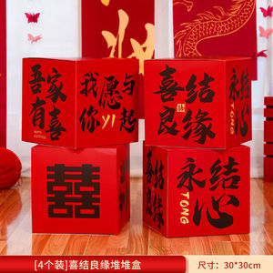 【婚房颜值好物】新潮风喜庆堆堆盒-囍字立体推推盒-天作之合【4个装】