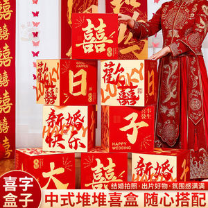 婚房布置客厅立体喜字落地摆件结婚男女方装饰婚礼订婚堆头喜盒子