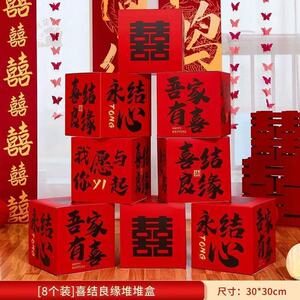 【婚房颜值好物】新潮风喜庆堆堆盒-囍字立体推推盒-新婚快乐【8个装】-