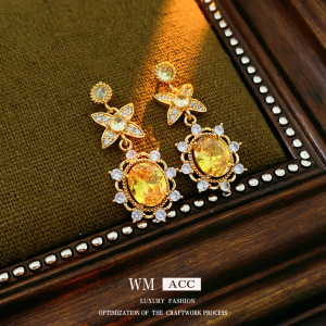 中古vintage锆石花朵几何套装轻奢高级感首饰复古精致百搭饰品女