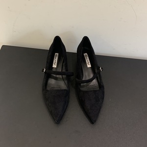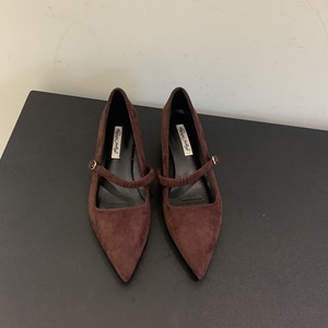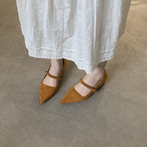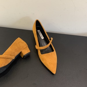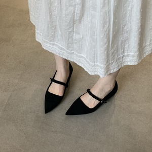 法式一字扣尖头绒面晚晚单鞋女2025新款配裙子绝美浅口玛丽珍瓢鞋