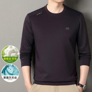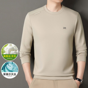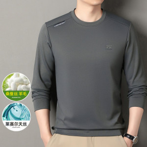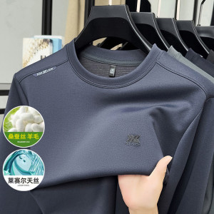 直播桑蚕丝长袖卫衣男式春秋季休闲百搭圆领弹力打底衫T恤上衣男
