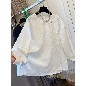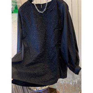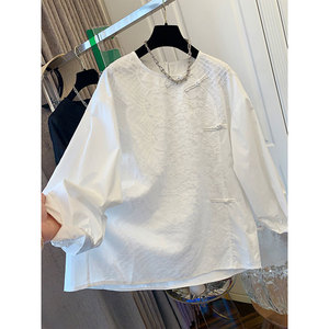 新中式盘扣蕾丝假两件衬衫上衣女胖妹妹宽松休闲春秋新款衬衣百搭