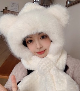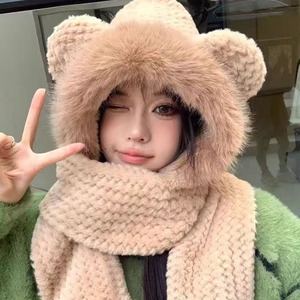 冬季防寒保暖小熊三件套帽子围巾手套可爱加厚加绒帽女围脖两件套