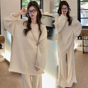 孕妇装春秋季针织毛衣宽松休闲网红秋冬三件套外穿慵懒风懒人套装