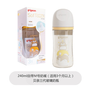 彩绘玻璃奶瓶240ml带M(3个月以上)