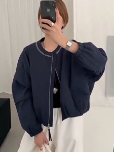 2025秋季新款韩版时尚设计感领口压明线短款外套女宽松休闲棒球服