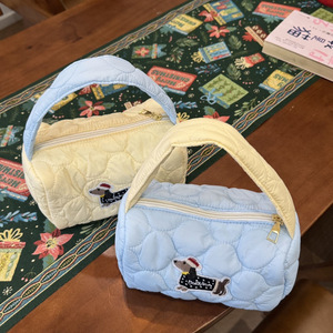 加棉腊肠小狗手提化妆包ins便携大容量洗漱收纳蓝色黄色无