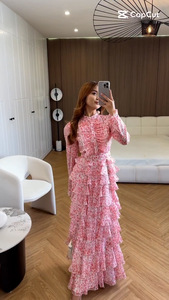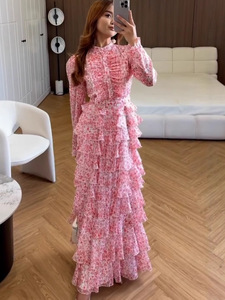2025年欧美亚马逊外贸秋季新款时尚气质收腰印花长裙连衣裙